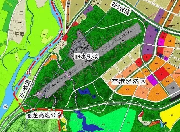 麗水機場定位為國內支線機場,飛行區等級指標為4C,新建1條長2800米、寬45米的跑道,2條垂直聯絡道,8個機位的站坪,12000平方米的航站樓,以及空管、供油等相關配套設施。新建麗水機場場址位于碧湖鎮東北側5.2km處甌江上游大溪河段東岸,由飛行區、航站樓、工作區等組成,其中飛行區升降帶及安全區總長度達3.3km,寬約300m,航站樓及工作區布置于飛行區西北側。場區地貌為低山丘陵與山麓溝谷,地形起伏變化較大,場地范圍附近山體最高點位于場區西南角,高程244.8m,最低點位于場地中部沙溪處,高程64.6m,相對高差約180.2m。場區山體植被發育,覆蓋率約80%。