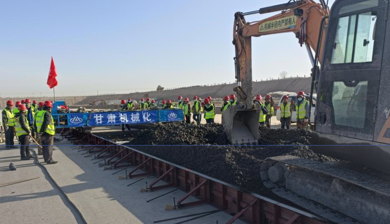 4月20日,由我司承建的蘭州中川國際機場三期擴建工程飛行區場道工程(五標段)道面混凝土試驗段正式開倉澆筑。