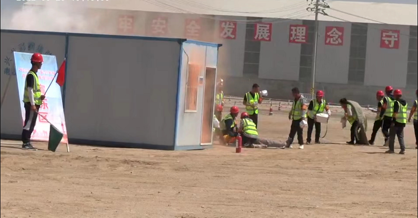 此次演練模擬項目現場駐地宿舍發生電器火災,項目部立即啟動應急預案,救援組第一時間撥打消防救援電話,組織人員有序撤離到安全區域。參演人員均嚴肅對待,過程規范迅速,演練活動順利完成。演練結束后,項目部組織開展了消防急救培訓,包含項目職工使用干粉滅火器進行滅火操作,對模擬假人進行心肺復蘇等。