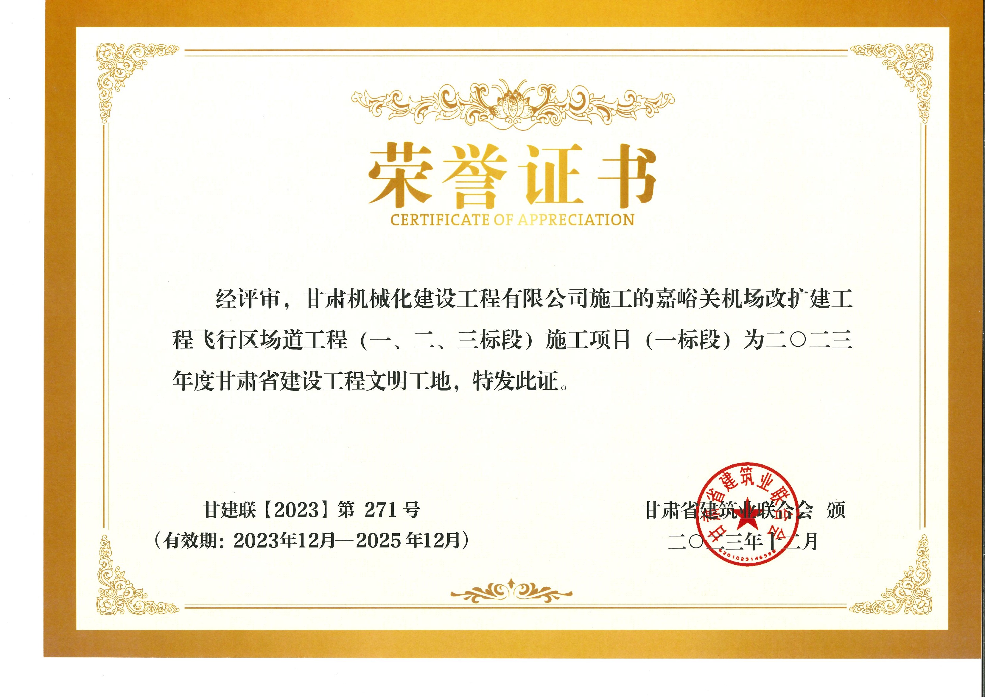 2023年度甘肅省建設(shè)工程文明工地 嘉峪關(guān)機(jī)場改擴(kuò)建工飛行區(qū)場道(一、二、三標(biāo)段) 施工項目 (一標(biāo)段)